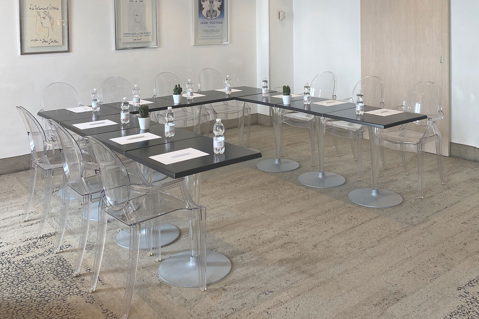 La salle de séminaire « Grand Prix », d’une surface de 24 m2, peut accueillir jusqu’à 20 personnes. Située en rez-de-chaussée, elle dispose d’une connexion Wi-Fi et de la climatisation.